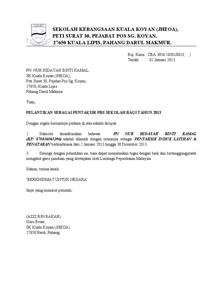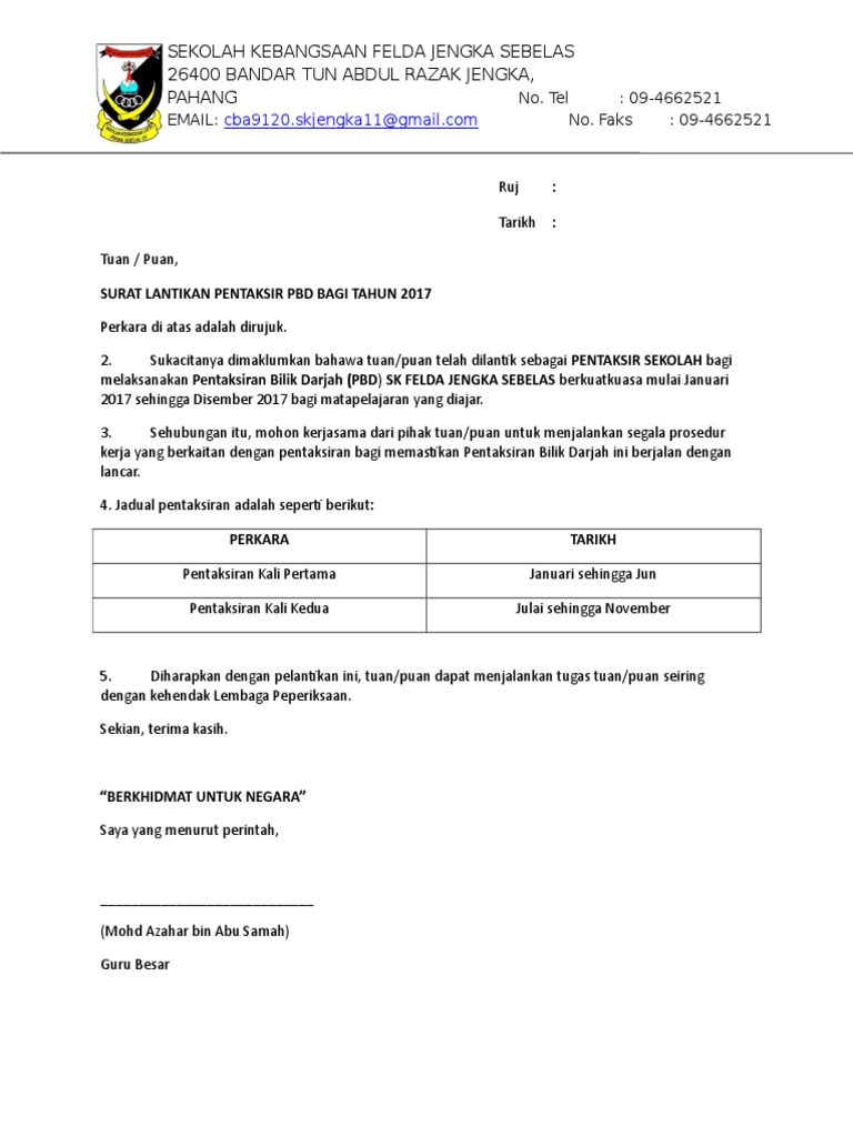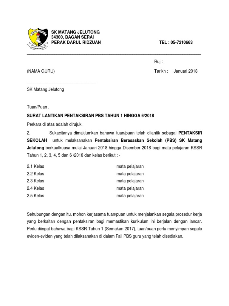 Contoh Surat Lantikan Pentaksir Pbs Kumpulan Contoh Terbaru